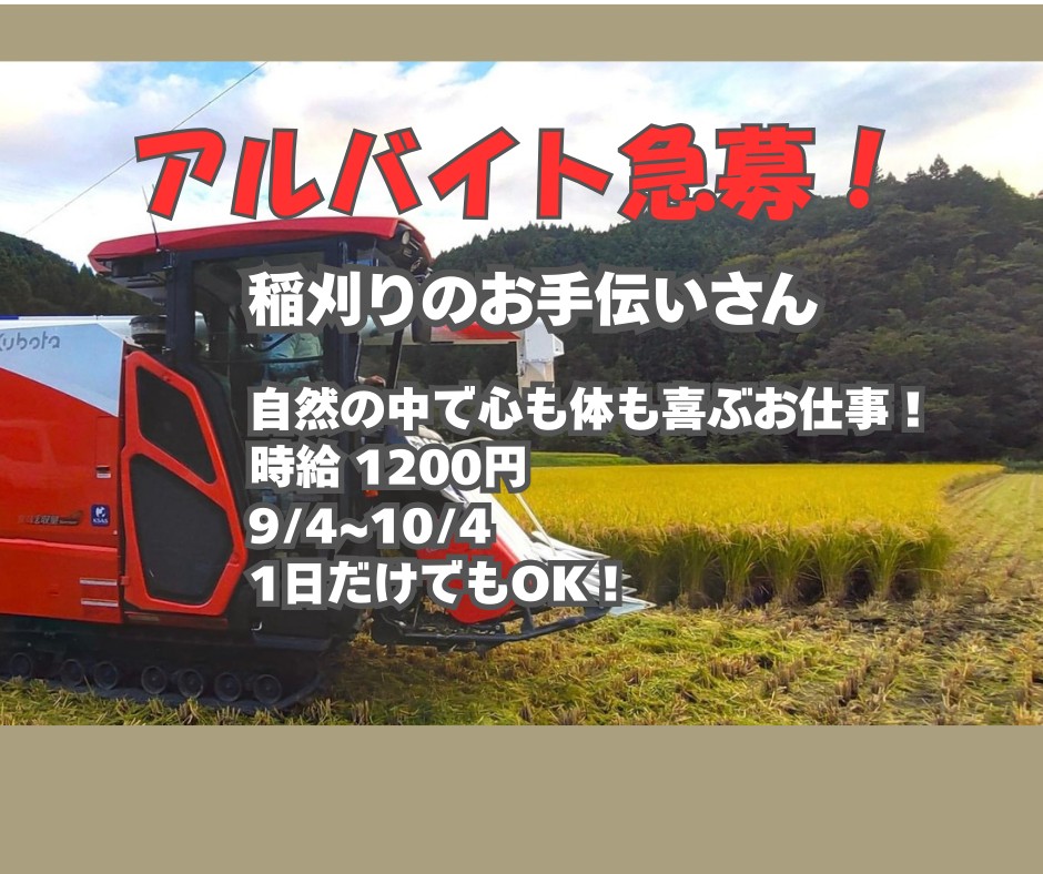 | 勤務内容 | ① 弊社軽トラで籾(もみ)運搬(要・普通免許) ② ライスセンターでお米の袋詰め 電動リフトありで体力に自信がなくても安心。 |